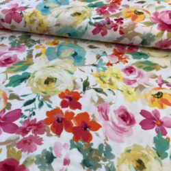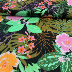 Viskose Sabine, Blätter und Blumen, naturfarben