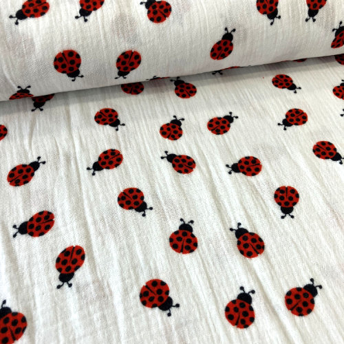 Double Gauze/Musselin Marienkäfer, altweiß