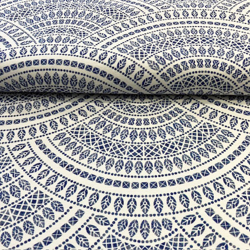 Webware Halbleinen Mira, blau auf weiß